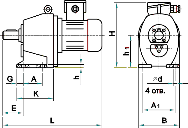 Конструкция мотор-редуктора состоит из цилиндрического соосного редуктора и электродвигателя. Мотор-редуктор может устанавливаться на изделие с помощью лап или фланца. В состав редуктора входит цилиндрическая передача из двух ступеней. Передаточное отношение редуктора зависит от размера и зубчатых колес и их количества. Система смазки позволяет непрерывно смазывать поверхности зубьев передач специальным маслом. На редукторе имеется контрольное окошечко для поддержания необходимого уровня масла. Для устранения избыточного давления и протечек имеется сапун.